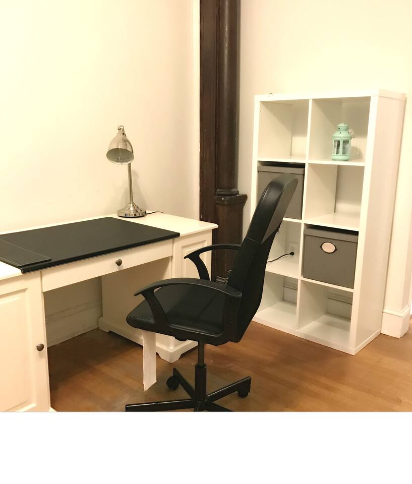 Comfy studio apartment with private bathroom in a beautiful and spacious 3-level townhouse. The studio features a queen size bed with memory foam mattress, a laptop-friendly work station with new office chair, large private closet, private kitchenette with hot plate, microwave and compact fridge, and private full bathroom.