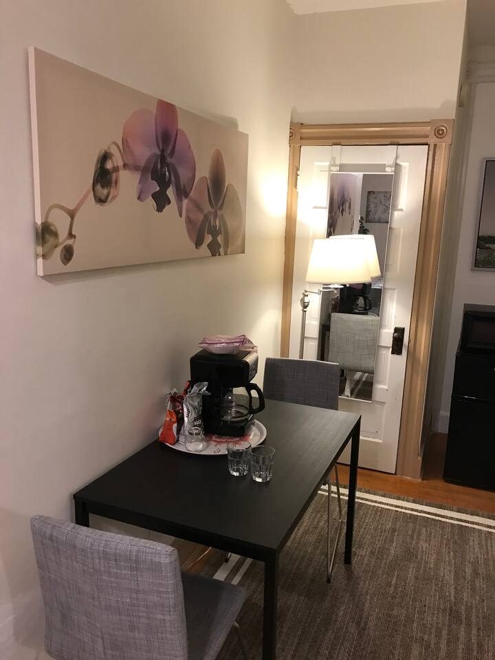 You have access to the entire studio (with 100% privacy), your very own private full bathroom, a private kitchenette with (ONLY) microwave and mini fridge. You also have access to the washer and dryer in the basement.